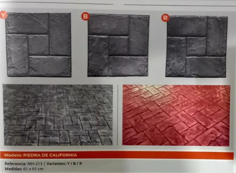 Cada molde aporta una personalidad distinta al pavimento, por lo que es fundamental elegir el diseño adecuado según el entorno y el uso previsto.